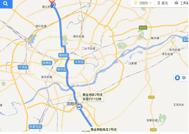 3) 继续沿浑河大街行驶2.2公里,过浑河大桥约270米后直行进入青年大街