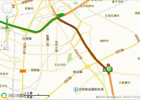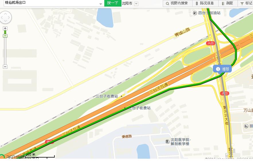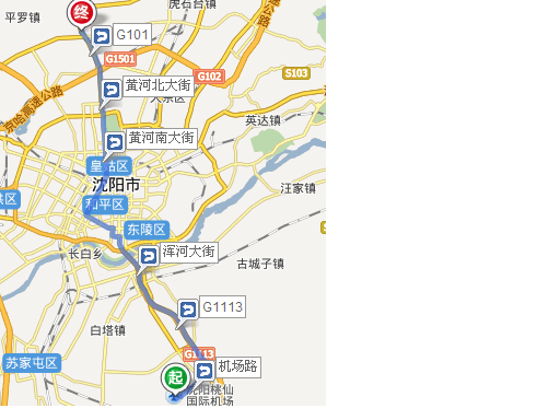 1) 沿机场路行驶2.5公里,朝沈丹高速方向,稍向右转