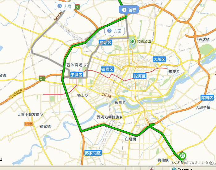 1) 沿沈阳绕城高速公路,行驶约40.5公里,靠右进入三台子互通
