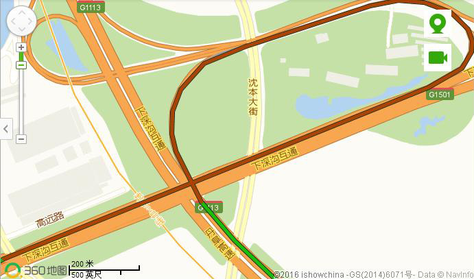 1) 沿G1113行驶9.2公里,直行进入浑河大街