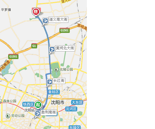 1) 从起点向西南方向出发,行驶210米,过右侧的麦当劳沈阳站餐厅,右转进入胜利南街